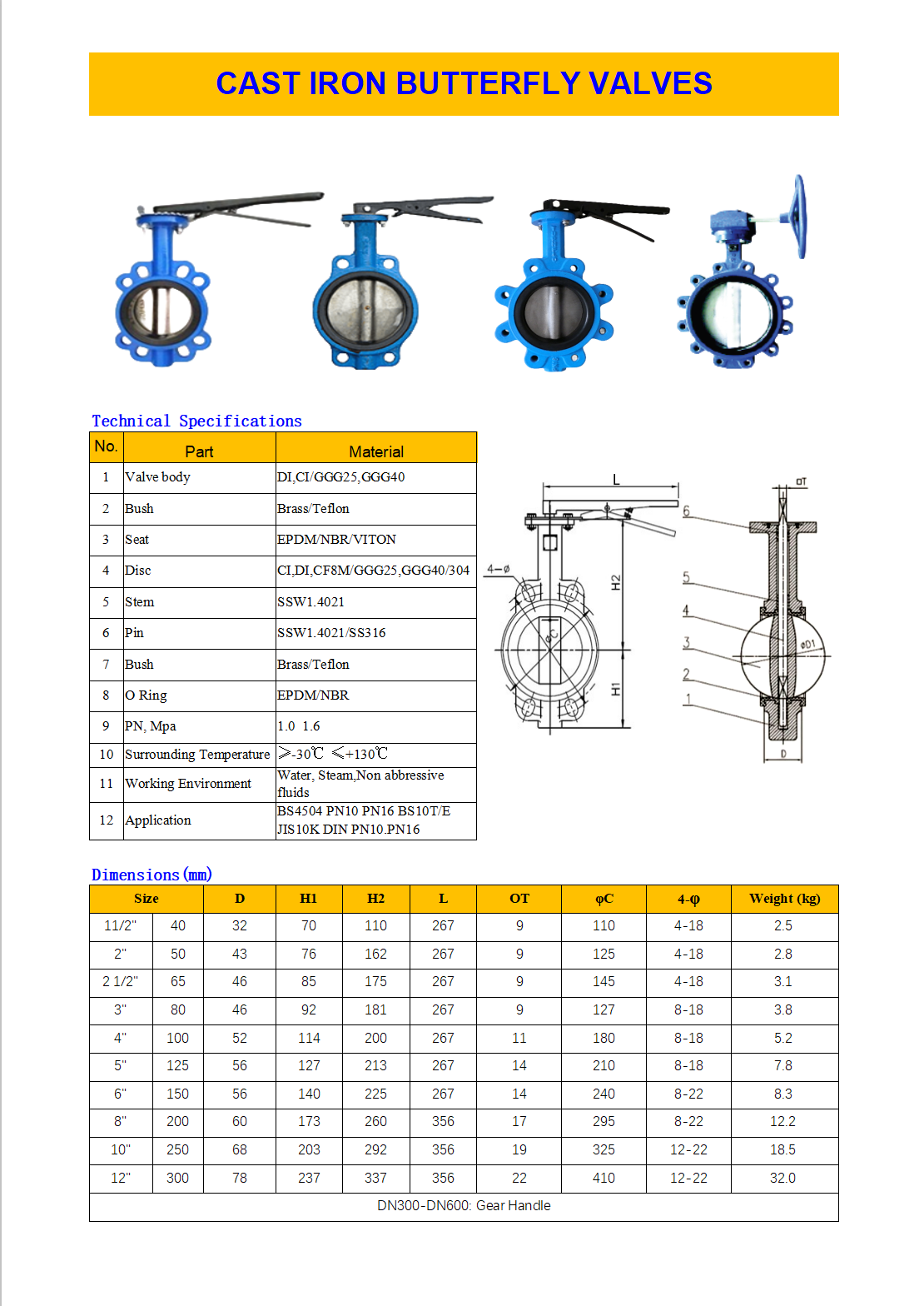 Connection: Wafer type, Universal bolt hole,Lug type, Matching bolt hole with flanges